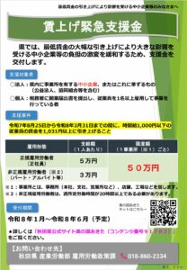 秋田県の賃上げ緊急支援金の要綱が出されております。